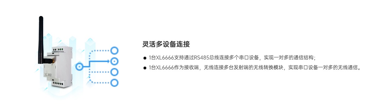• 較遠距離的串口通信,尤其是敷設電纜、光纖不便,施工成本高的場景,選擇XL6666串口無線轉換模塊實現無線傳輸,省成本、工期短,運行、維護也更簡單方便。
