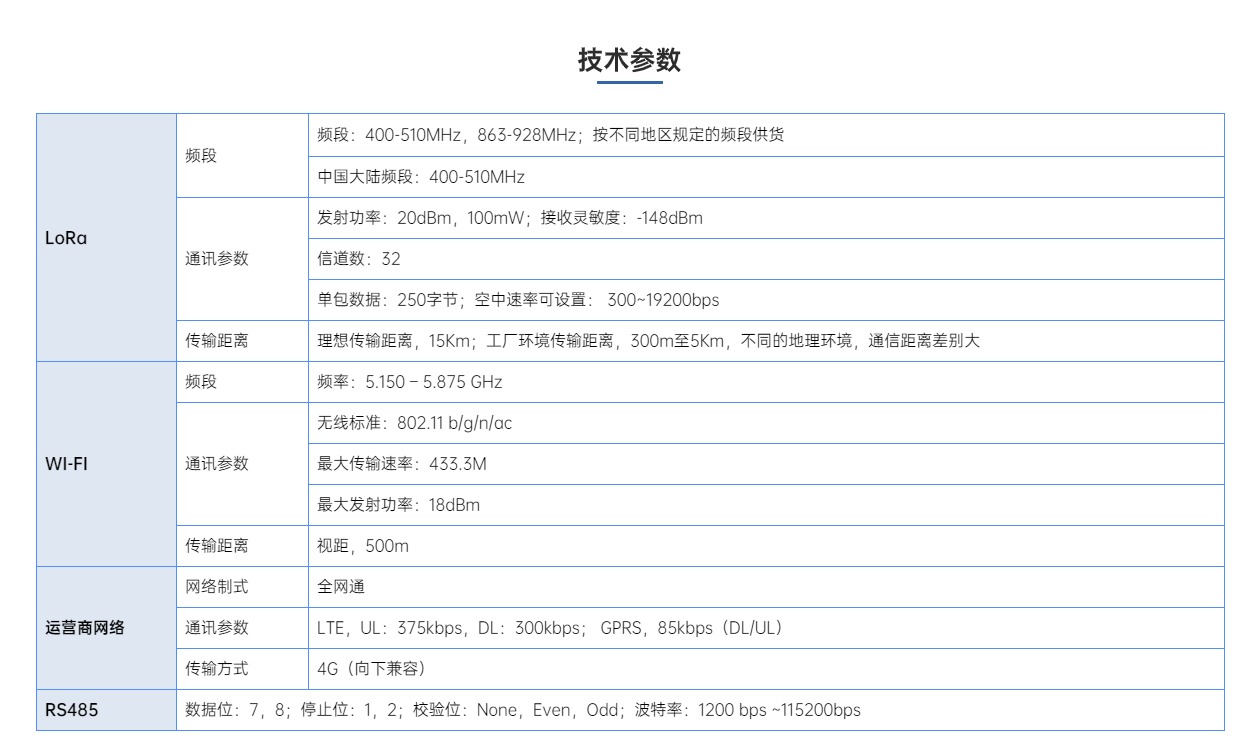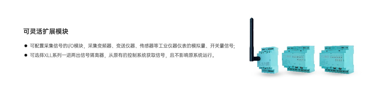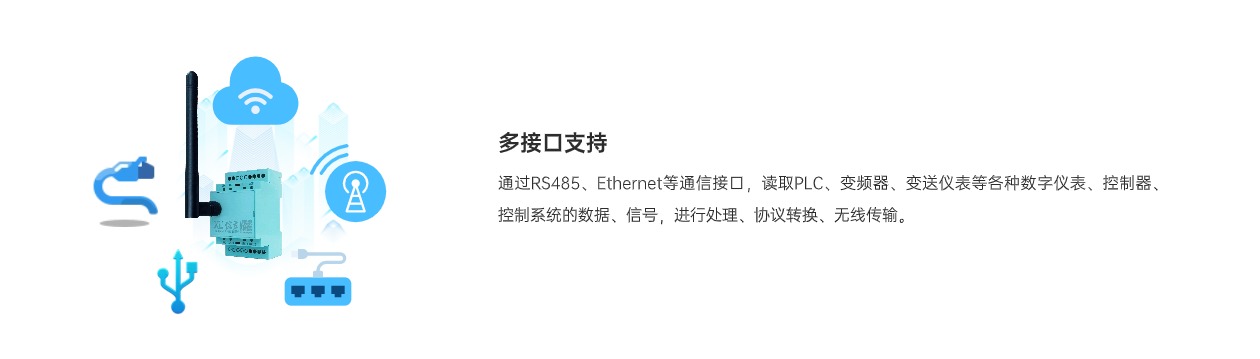 既可作為采集模塊,直接采集設備的數據上傳、聯網;也可作為無線接收端,讀取采集模塊、智能傳感器的數據,進行通訊處理、協議轉換,轉發數據至平臺。