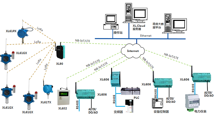 在產(chǎn)生有毒有害危險氣體的場景,配置相應(yīng)的氣體變送器,信號接入XL60智能采集裝置;