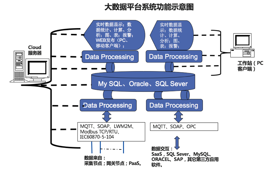系統(tǒng)的核心,是設(shè)計(jì)開(kāi)發(fā)一套大數(shù)據(jù)云平臺(tái);企業(yè)級(jí)的,工業(yè)物聯(lián)網(wǎng), SaaS云平臺(tái);