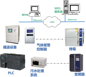 工廠的各種類生產(chǎn)設(shè)備、生產(chǎn)系統(tǒng)及監(jiān)控系統(tǒng),需要通過廠內(nèi)LAN接入MES。