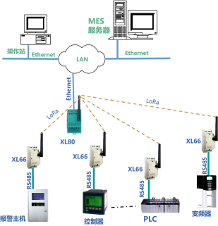 XL80主機,通過LoRa無線接口,從XL66無線讀取設(shè)備的運行數(shù)據(jù),通信協(xié)議轉(zhuǎn)換處理后,通過Ethernet,轉(zhuǎn)發(fā)數(shù)據(jù)至MES。