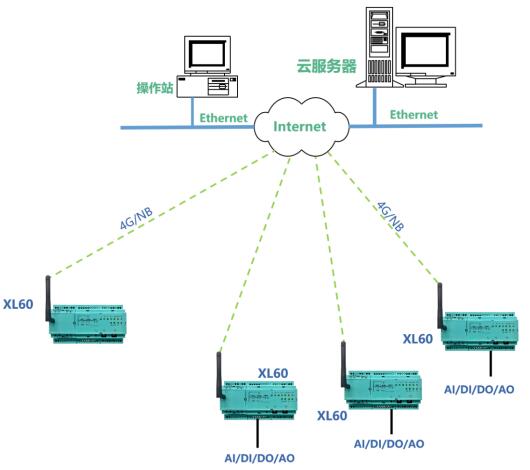 XL60無線采集裝置,采集工業現場模擬、開關量,輸出模擬、開關量,可選多種無線通訊方式和通信協議。